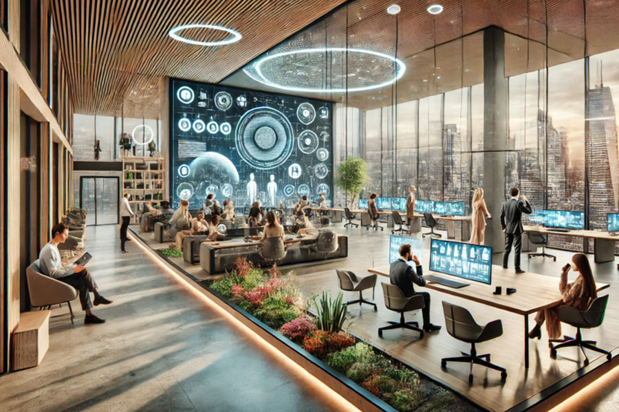 Workspace optimization relies on AI. Predictive algorithms analyze occupancy and energy use to self-regulate facilities in real time. Meeting rooms recommend times based on team availability. Heating and cooling systems adjust to expected traffic. Efficiency is now built into the building, not just monitored.